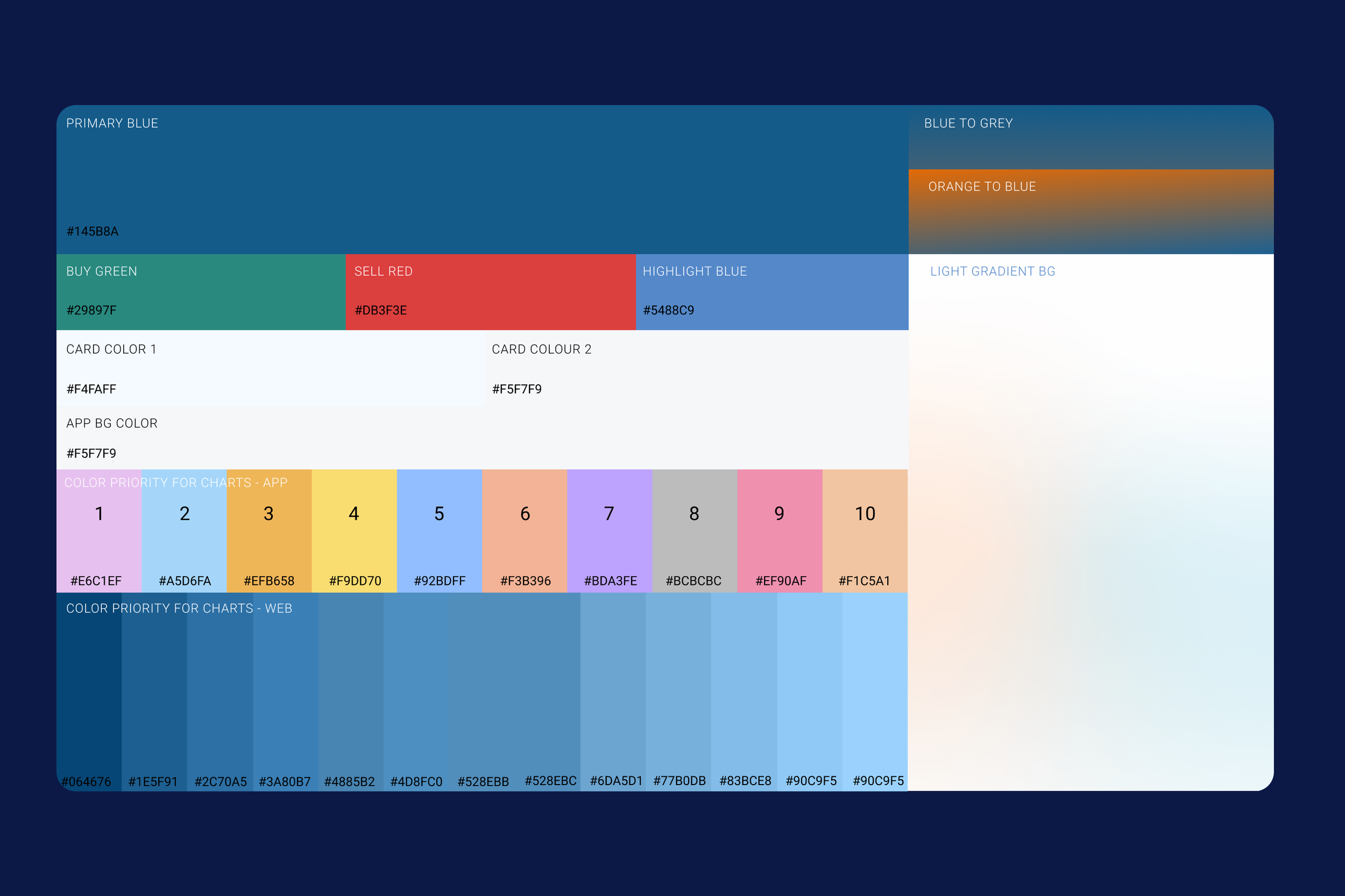 I went on to detail the app and define UI elements, evolving this design system from a simple style guide. We chose a playful, colorful approach for the app while maintaining the web platform's original deep blue hues. This created two distinct visual approaches, differentiating the tools for retail investors and investment professionals.